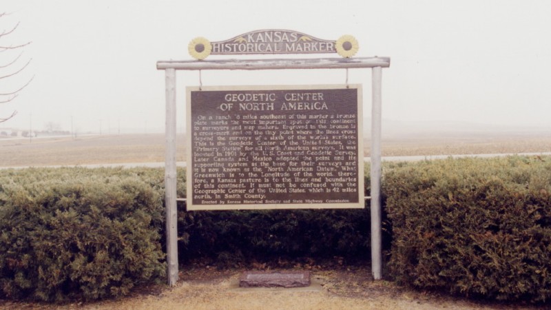 The Geodetic Center of North America is in a field north of the town of Lucas, Kansas.