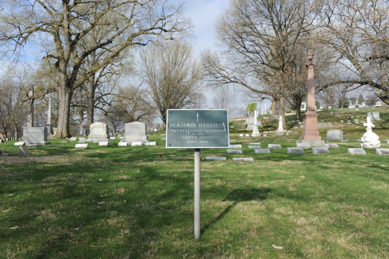 Harrison is buried in the Crown Hill Cemetery, in town.