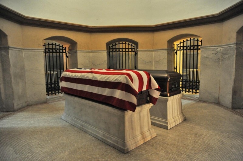 James Garfield and his wife Lucretia are interred inside, beside urns containing the remains of their only child, Mollie, and her husband Joseph Stanley-Brown, who served as Garfield’s private secretary.