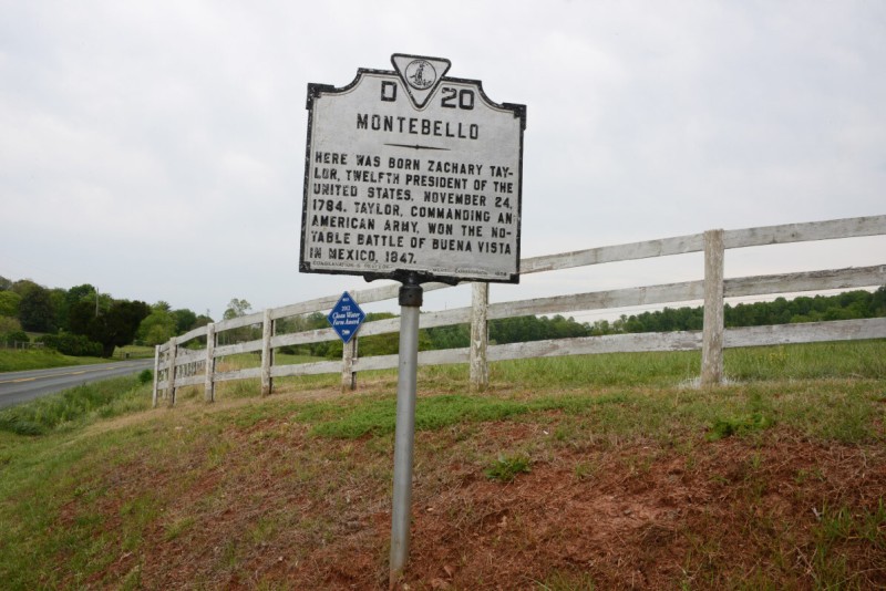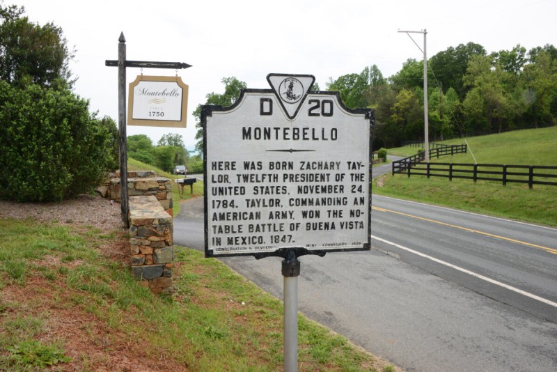 In 1784, when Zachary Taylor was born, his parents were visiting relatives at the Montebello Plantation, in Barboursville, Virginia, staying in an outbuilding that was described as a small log guesthouse.
