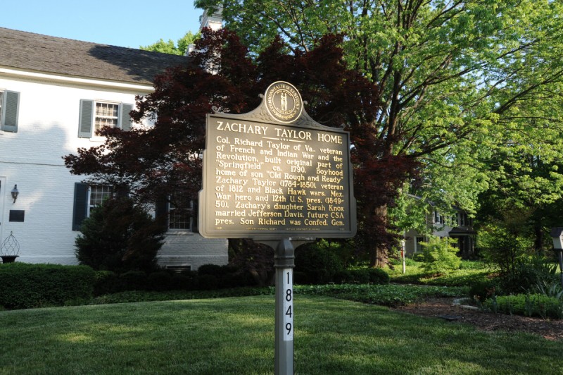 Zachary Taylor’s family settled at their new plantation, Springfield, east of Louisville, Kentucky. The farm prospered, and their land holdings grew to a thousand acres. Springfield is now a private home, not open to the public.